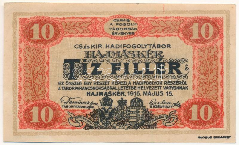 Hajmáskér / hadifogolytábor 1916. május 15. 10f római sorozat és arab sorszámozás "XX 0519" T:AU / Hungary / Hajmáskér / POW camp 15.05.1916. 10 Heller with Roman series and Arabic serial numbers "XX 0519" C:AU