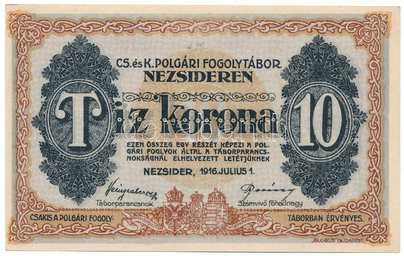 Nezsider / Hadifogolytábor 1916. július 1. 20K "MS" betűjel, római sorozat- és arab sorszámmal "XI 0218" T:AU / Hungary / Nezsider / POW Camp 1. 07. 1916. 20 Korona with "MS" letters, Roman series and Arabic serial number "XI 0218" C:AU