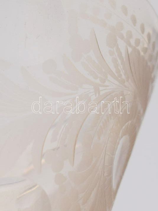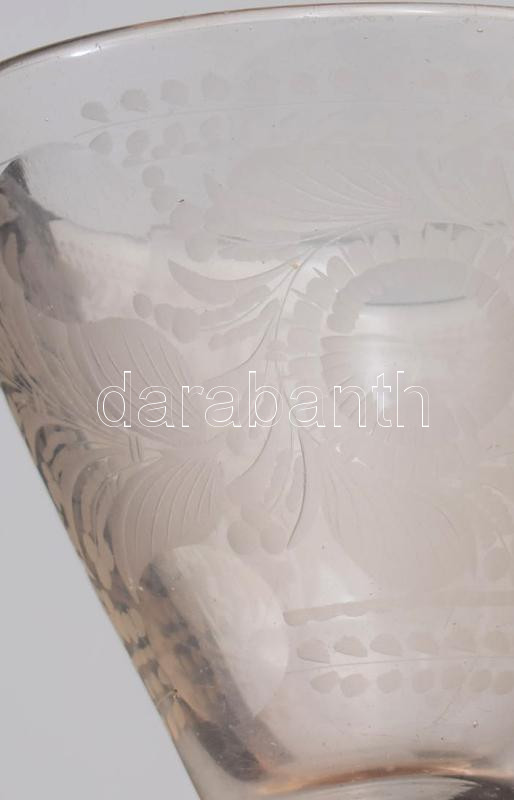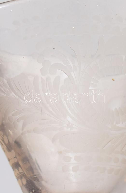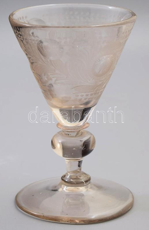 Footed goblet. Approximately the last third of the 17th century, Porumbák, with a floral pattern framed by a dotted decoration on the bowl. Without markings, flawless, height: 15 cm."