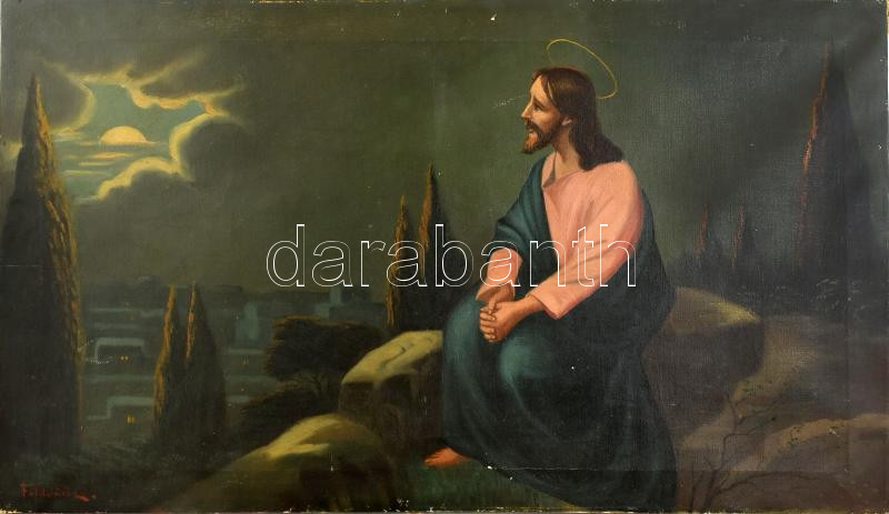 Leírás: Földvári jelzéssel: Jézus az olajfák hegyén. Olaj, vászon. Kissé sérült. 55x94 cm