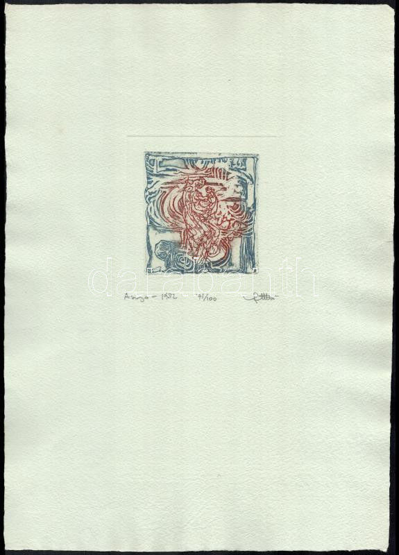 Leírás: Stettner Béla (1928-1984): Anya, 1982. Színes rézkarc, merített papír, jelzett, 71/100 számozással, 9×9 cm
