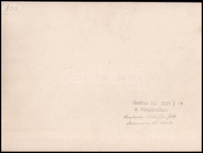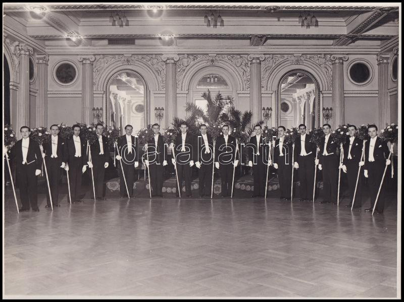 1935 Budapest, Hungária Hotel, Medikus bál, pecséttel jelzett vintage fotó, ezüst zselatinos fotópapíron, a felvételt Schäffer fényképész és fotóriporter készítette, 17,4x23,3 cm