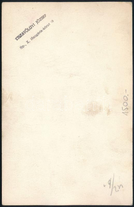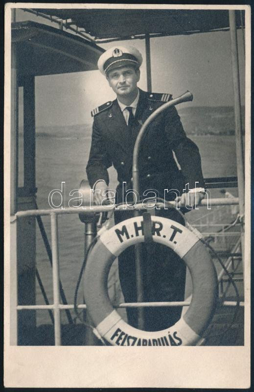 Leírás: A Felszabadulás mentőhajó kapitánya, Tiszavölgyi József pecséttel jelzett fotója, 13×9 cm