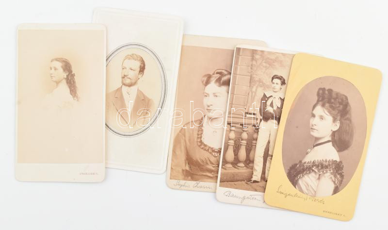 Leírás: cca 1865-1875 Műtermi portrék, 5 db keményhátú fotó Strelisky műterméből, 10,5×6,5 cm