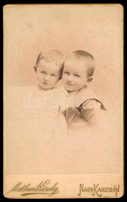 cca 1900 Két gyermek, keményhátú fotó Mathea Károly nagykanizsai műter... https://www.darabanth.com/hu/440-Gyorsarveres/440.0/Fotomuveszet/Foto~500023/cca-1900-Ket-gyermek-kemenyhatu-foto-Mathea-Karoly-nagykanizsai-mutermebol-10-5C3976-5-cm~II2891266