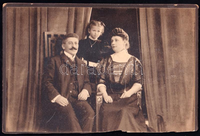 Leírás: cca 1910 Dr. Havas Ármin és felesége, valamint leányuk Havas Anna, keményhátú fotó, vágott karton, kopásnyomokkal, 14×20,5 cm