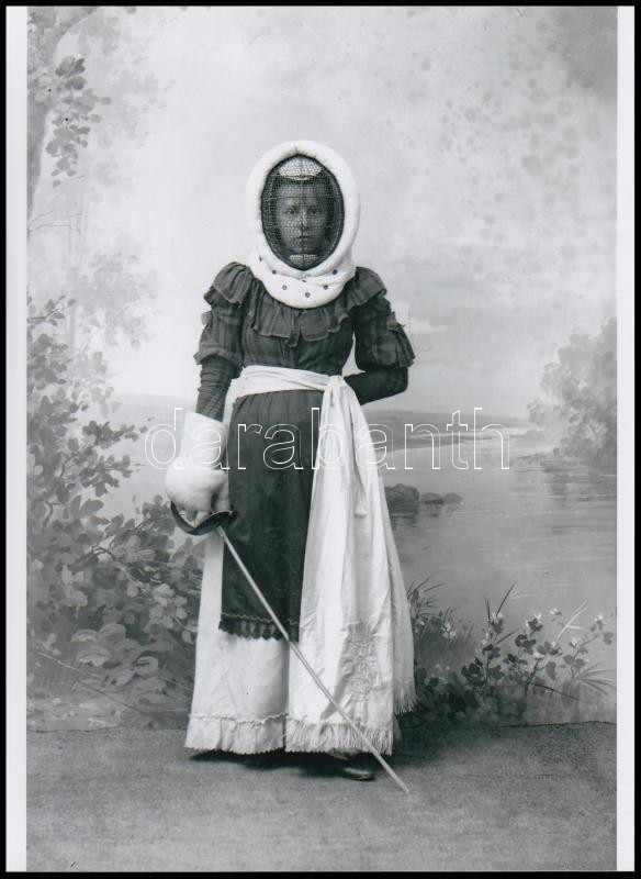 Leírás: cca 1910 Gráf Rudolf (?-?) egri fényképész hagyatékából 1 db modern nagyítás (Tőrvívó), 21x15 cm