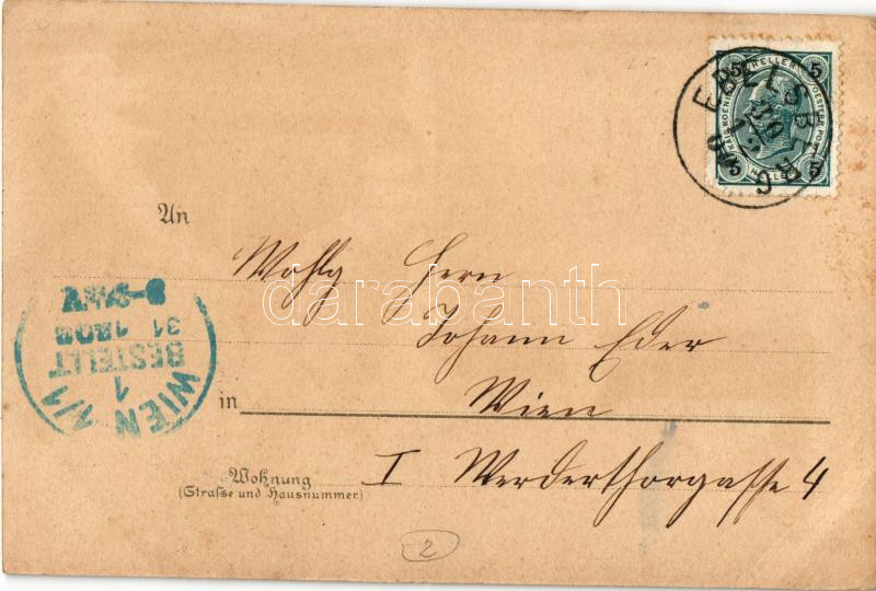 Leírás: 1900 Linz a. Donau, Gruss aus der Silvesternacht. Bitte gegen das Licht zu halten / New Year's Eve hold to light litho