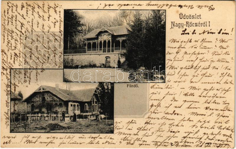 Leírás: 1904 Nagyrőce, Nagy-Rőcze, Gross-Rauschenbach, Velká Revúca; Nagyrőczei vasas gyógyfürdő. Büchler Béla kiadása / spa, bath