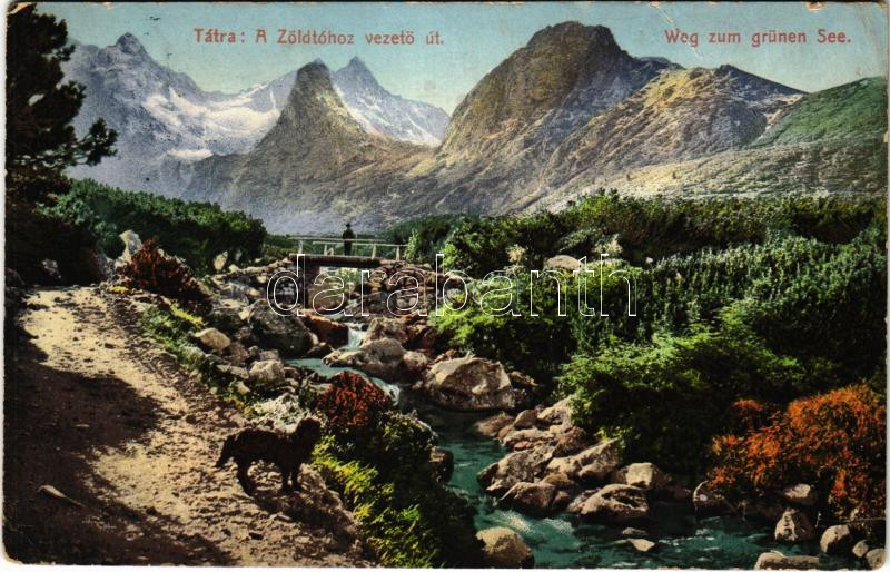Tátra, Magas-Tátra, Vysoké Tatry; A Zöld-tóhoz vezető út. Cattarino S.... https://www.darabanth.com/hu/440-Gyorsarveres/440.0/Kepeslapok/Felvidek~2000006/Tatra-Magas-Tatra-Vysoke-Tatry-A-Zold-tohoz-vezeto-ut-Cattarino-S-utoda-Foldes-Samu-ki~II2890954