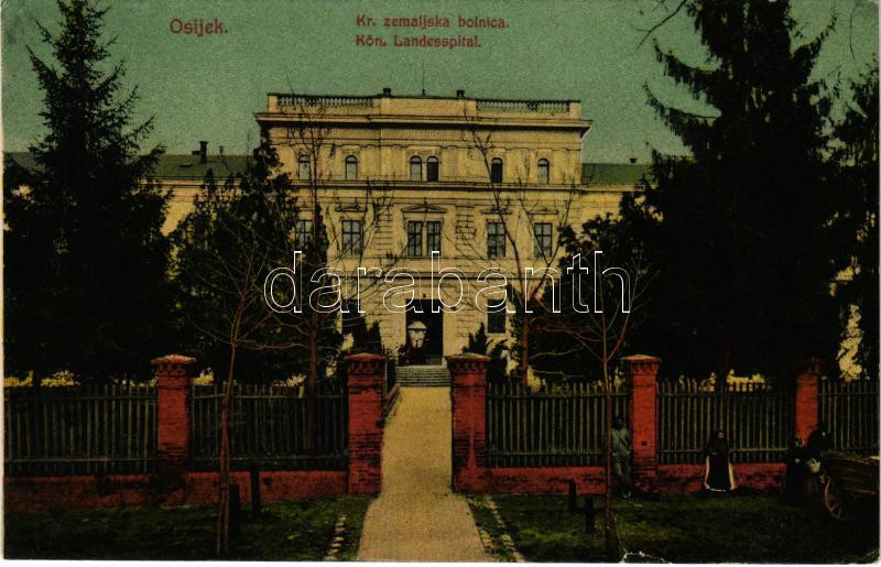 1915 Eszék, Osijek, Essegg; Kr. zemaljska bolnica / Kön. Landesspital ... https://www.darabanth.com/hu/440-Gyorsarveres/440.0/Kepeslapok/Horvatorszag~2000008/1915-Eszek-Osijek-Essegg-Kr-zemaljska-bolnica-Kon-Landesspital-hospital-szakadas-tear~II2894403