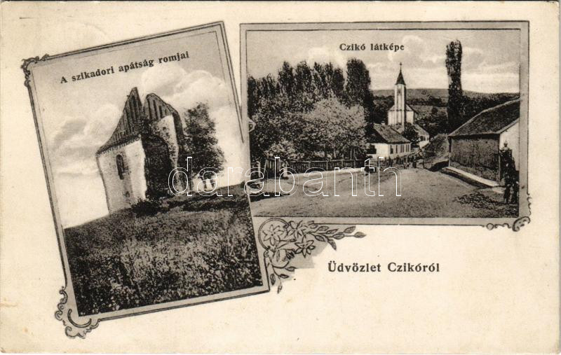 Leírás: 1916 Cikó, Czikó (Tolna); A szikadori apátság romjai, látkép, utca. Gász József kiadása Art Nouveau, floral (EK)