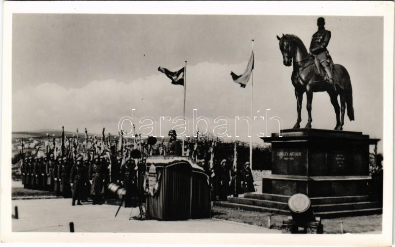 Leírás: 1941 Budapest I. Az 1848-49-es szabadságharci zászlók ünnepélyes hazahozatala Oroszországból. Az ünnepség színhelye a Hadimúzeum előtt