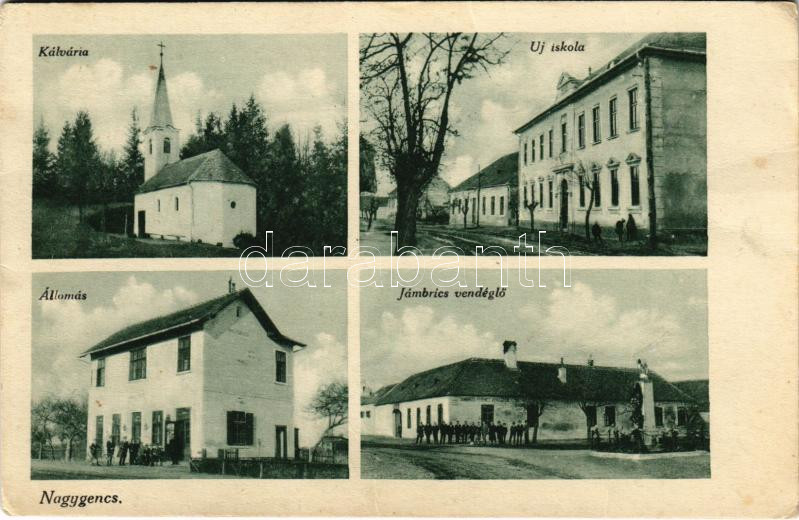Nagygencs, Kálvária, állomás, Új iskola, Jámbrics vendéglő. Haber fény... https://www.darabanth.com/hu/440-Gyorsarveres/440.0/Kepeslapok/Magyarorszag~2000005/Nagygencs-Kalvaria-allomas-Uj-iskola-Jambrics-vendeglo-Haber-fenykepesz-kiadasa-gy~II2889196