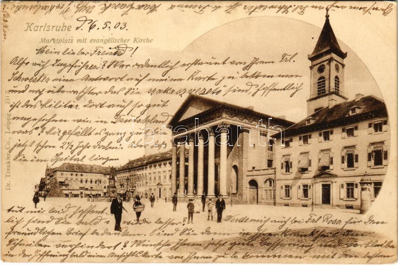 1903 Karlsruhe, Marktplatz mit evangelischer Kirche / market square, c... https://www.darabanth.com/hu/440-Gyorsarveres/440.0/Kepeslapok/Nemetorszag~2000082/1903-Karlsruhe-Marktplatz-mit-evangelischer-Kirche-market-square-church-fl~II2894832