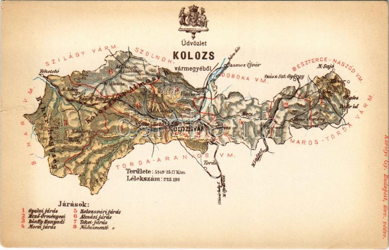 Kolozs vármegye térképe. Károlyi Gy. kiadása / Map of Cluj county (sza... https://www.darabanth.com/hu/440-Gyorsarveres/440.0/Kepeslapok/Terkep~2000044/Kolozs-varmegye-terkepe-Karolyi-Gy-kiadasa-Map-of-Cluj-county-szakadas-tear~II2888723