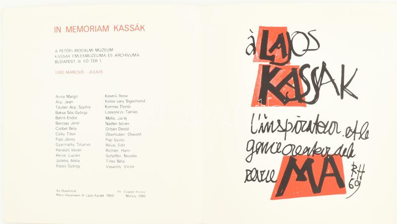 Leírás: 1980 In memoriam Kassák. A Petőfi Irodalmi Múzeum Kassák Emlékmúzeuma és Archívuma, Bp., 1980. márc - július, kiállítási katalógus, 2 sztl. lev.