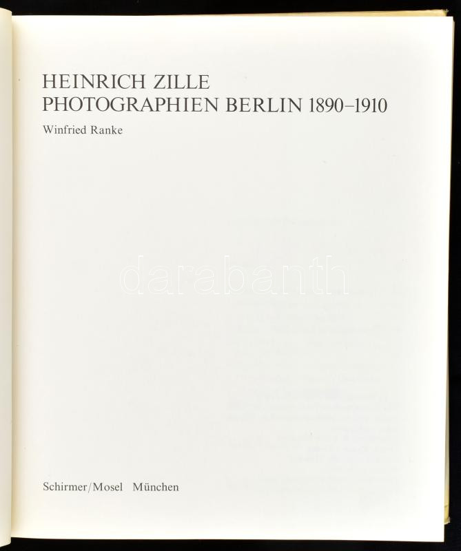 Leírás: Winfried Ranke - Heinrich Zille: Photographien Berlin 1890-1910. München, 1975, Schirmer/Mosel. Gazdag fekete-fehér képanyaggal illusztrálva. Német nyelven. Kiadói kartonált papírkötés, kissé sérült kiadói papír védőborítóban, ajándékozási bejegyzéssel.