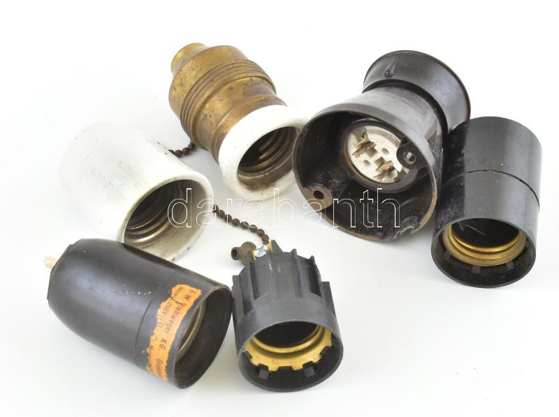 Leírás: Vegyes régi villanyszerelvények, közte porcelán foglalatok, össz. 6 db