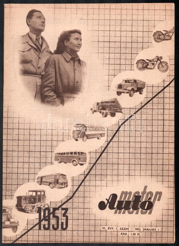 1951-1952-1953 Autó - Motor folyóirat 3 száma, az 1952. dec. 15. szám borítóján Sztálinnal autógyár megtekintése közben: "A világ dolgozói ünneplik Sztálin elvtárs 73. születésnapját."