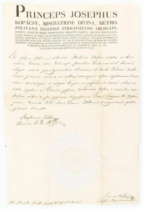 1842 Kollár István (1764-1844) királyi tanácsos, kanonok, választott p... https://www.darabanth.com/hu/440-Gyorsarveres/440.0/Mutargy-papirregiseg-egyeb/Okmanyok~500020/1842-Kollar-Istvan-1764-1844-kiralyi-tanacsos-kanonok-valasztott-puspok-altal-alairt-l~II2894843
