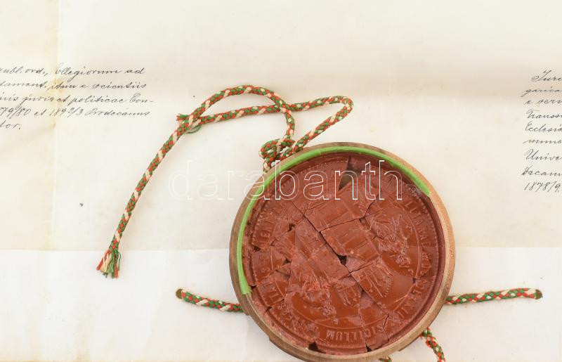 1901 Jogi diploma a Kolozsvári Tudományegyetemről. Pergamen, sérült fü... https://www.darabanth.com/hu/440-Gyorsarveres/440.0/Mutargy-papirregiseg-egyeb/Okmanyok~500020/1901-Jogi-diploma-a-Kolozsvari-Tudomanyegyetemrol-Pergamen-serult-fuggo-viaszpecsettel-fe~II2894810