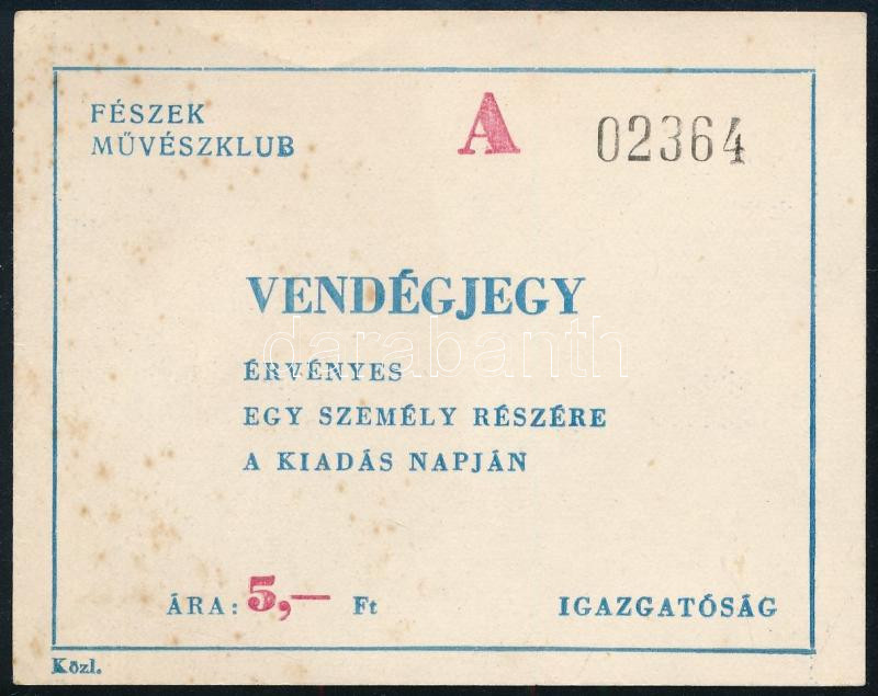 cca 1990 Vendégjegy a Fészek Művészklubba https://www.darabanth.com/hu/440-Gyorsarveres/440.0/Mutargy-papirregiseg-egyeb/Okmanyok~500020/cca-1990-Vendegjegy-a-Feszek-Muveszklubba~II2894459