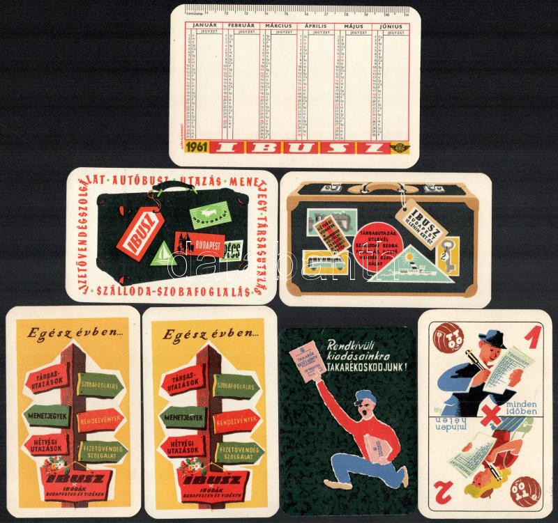 Leírás: 7db 1956-61 közötti kártyanaptár: IBUSZ (5 db), Toto, OTP