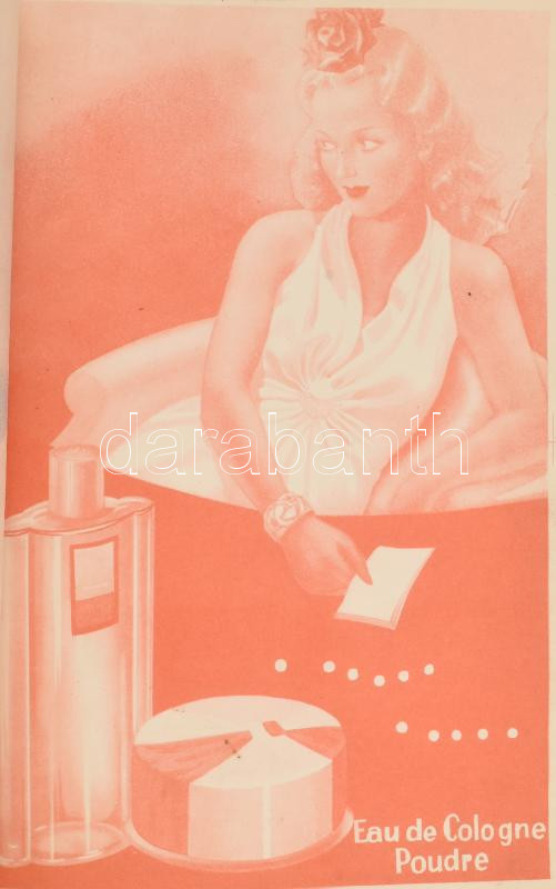cca 1930 "Üdító, kellemes illat" - Chat Noir kölni, art deco reklám, kisplakát (próbanyomat). Hátoldalán a megrendelő (Magyarországi Odolművek Rt.) bélyegzőjével és utasításaival, aláírással, 24x16 cm + a plakátról készült 6 db különböző színnyomat, tűzött papírkötésben