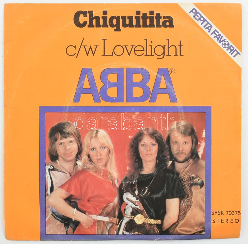ABBA - Chiquitita c/w Lovelight. Vinyl, 7", 45 RPM, Single, Stere... https://www.darabanth.com/hu/440-Gyorsarveres/440.0/Mutargy-papirregiseg-egyeb/Zenei-bakelit-lemezek-CD-k-DVD-k~500034/ABBA-Chiquitita-cw-Lovelight-Vinyl-7-45-RPM-Single-Stereo-Pepita-Magyarorszag-1979-VGplus~II2879302