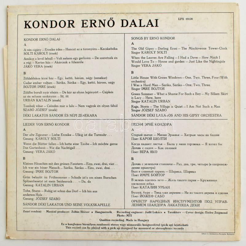 Kondor Ernő - Hungarian Songs (Kondor Ernő dalai). Vinyl, LP, Stereo. ... https://www.darabanth.com/hu/440-Gyorsarveres/440.0/Mutargy-papirregiseg-egyeb/Zenei-bakelit-lemezek-CD-k-DVD-k~500034/Kondor-Erno-Hungarian-Songs-Kondor-Erno-dalai-Vinyl-LP-Stereo-Qualiton-Magyarorszag-197~II2893895