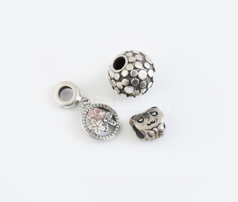 Leírás: Ezüst(Ag) charm, 3 db, jelzéssel és jelzés nélkül, bruttó: 8,5 g