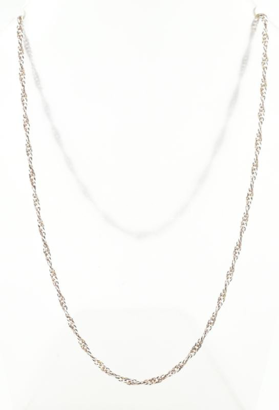 Ezüst(Ag) fonott, csavart nyaklánc, jelzett, h: 55 cm, nettó: 6,7 g https://www.darabanth.com/hu/440-Gyorsarveres/440.0/Nemesfem-disztargyak-ekszerek-dragakovek/Nemesfem-disztargyak-ekszerek-dragakovek~500057/EzustAg-fonott-csavart-nyaklanc-jelzett-h-55-cm-netto-6-7-g~II2888261