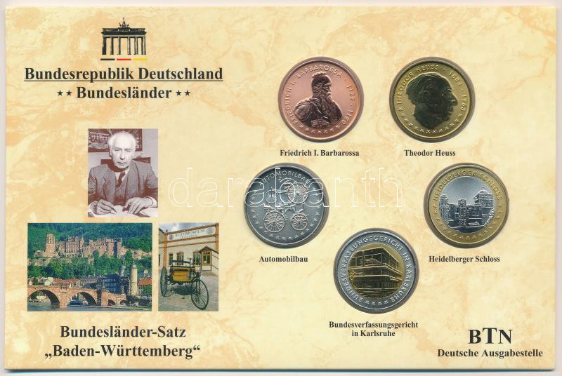 Leírás: Németország ~2000. "Baden-Württemberg" kétoldalas emlékérem szett (5xklf) díszkartonban T:1-