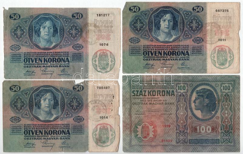 1912. 100K fekete "ROMANIA TIMBRU SPECIAL" felülbélyegzéssel a német oldalon + 1914. 50K fekete "ROMANIA TIMBRU SPECIAL" felülbélyegzéssel a német oldalon (3db) T:F,VG kis anyaghiány