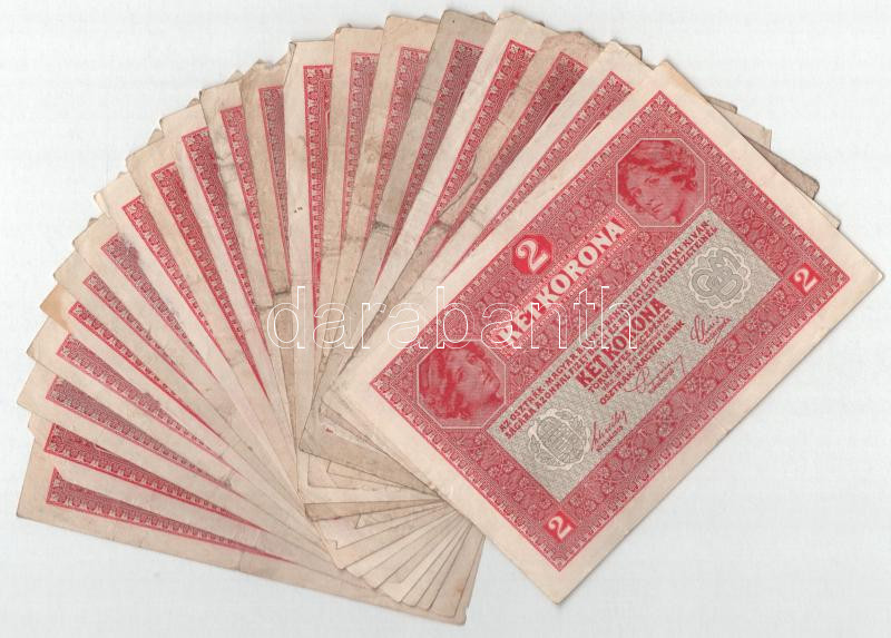 1917. 2K (20db) T:F,VG közte kis anyaghiány Adamo K6 https://www.darabanth.com/hu/440-Gyorsarveres/440.0/Numizmatika/Magyar-bankjegyek~1500007/1917-2K-20db-TF-VG-kozte-kis-anyaghiany-Adamo-K6~II2888077