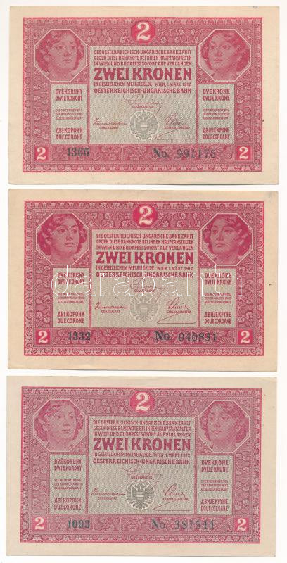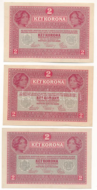 1917. 2K (3db) T:AU,XF hajtatlan Adamo K6 https://www.darabanth.com/hu/440-Gyorsarveres/440.0/Numizmatika/Magyar-bankjegyek~1500007/1917-2K-3db-TAU-XF-hajtatlan-Adamo-K6~II2888052