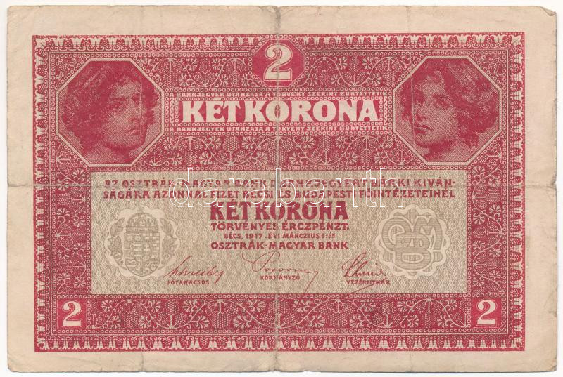 1917. 2K "7000 feletti sorozatszám" T:F,VG Adamo K6 https://www.darabanth.com/hu/440-Gyorsarveres/440.0/Numizmatika/Magyar-bankjegyek~1500007/1917-2K-7000-feletti-sorozatszam-TF-VG-Adamo-K6~II2888167