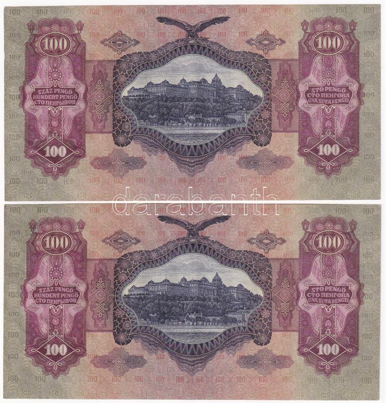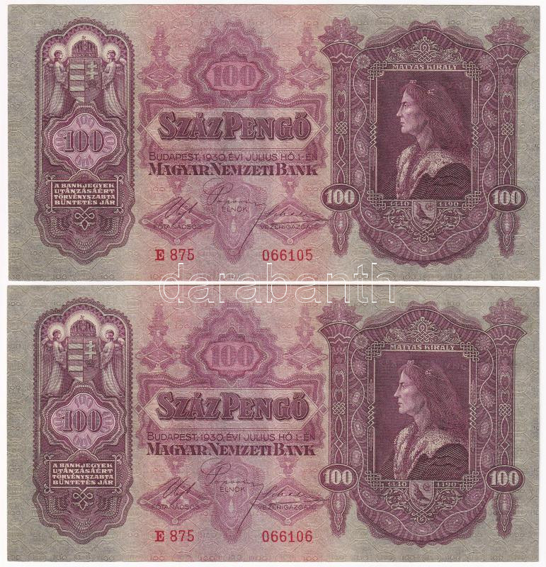 Leírás: 1930. 100P (2x) sorszámkövetők "E 875 066105 - E 875 066106" T:UNC,AU