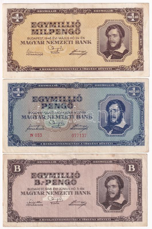Leírás: 1945. 1.000.000P + 1946. 1.000.000MP + 1.000.000BP T:F folt