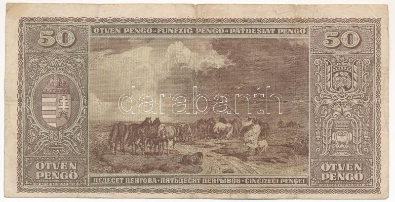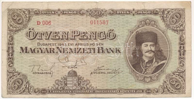 1945. 50P T:F,VG Adamo P15 https://www.darabanth.com/hu/440-Gyorsarveres/440.0/Numizmatika/Magyar-bankjegyek~1500007/1945-50P-TF-VG-Adamo-P15~II2888287