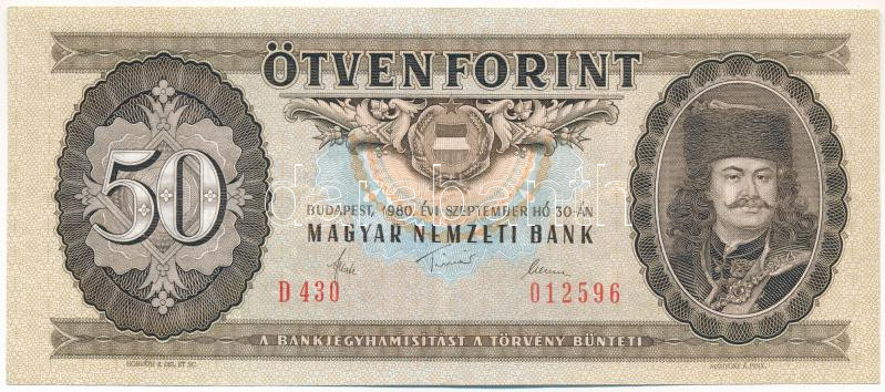 1980. 50Ft "D 430 012596" T:XF,VF https://www.darabanth.com/hu/440-Gyorsarveres/440.0/Numizmatika/Magyar-bankjegyek~1500007/1980-50Ft-D-430-012596-TXF-VF~II2888616