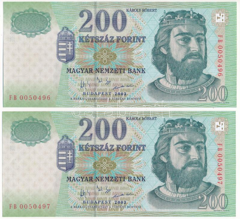 Leírás: 2003. 200Ft (2x) sorszámkövetők "FB 0050496 - FB 0050497" T:UNC