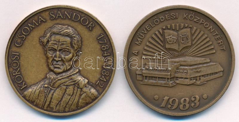 Fritz Mihály (1947-) 1983. "A Művelődési Központért / Nagyközségi Tanács - Szécsény" kétoldalas bronz emlékérem (42mm) + Bognár György (1944-) 1992. "Magyarok III. Világkongresszusa / Kőrösi Csoma Sándor" Br emlékérem (42,5mm) T:1-