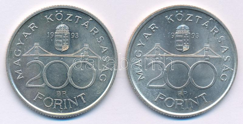 Leírás: 1993. 200Ft Ag "MNB" (2x) T:AU