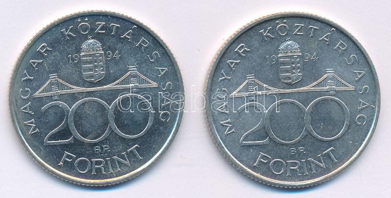 Leírás: 1994. 200Ft Ag "Deák" (2x) T:UNC,AU