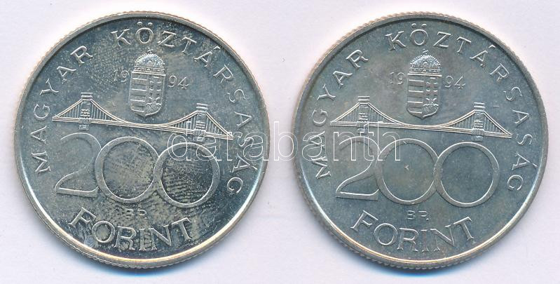 Leírás: 1994. 200Ft Ag "Deák" (2x) T:UNC