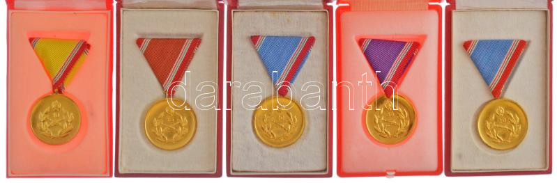 1983. "Honvédelmi Érdemérem" 10, 15, 20 és 25 év után (5x, ebből 4xklf) aranyozott bronz kitüntetés mellszalagon, díszdobozban T:AU patina NMK 657, 658, 659, 660
