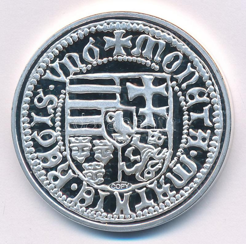 Leírás: DN "A legértékesebb magyar érmék - Hunyadi Mátyás ezüst garasának replikája" ezüstözött Cu emlékérem, "COPY" jelzéssel, tanúsítvánnyal (40mm) T:PP