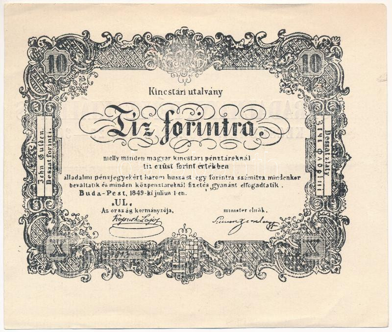 1849. 10Ft "Kincstári utalvány" utánnyomat hátoldalán "... https://www.darabanth.com/hu/440-Gyorsarveres/440.0/Numizmatika/Numizmatikaval-kapcsolatos-egyeb-tetelek~1500003/1849-10Ft-Kincstari-utalvany-utannyomat-hatoldalan-Forradalmaink-Penzei-Kiallitas-Kecsk~II2890502